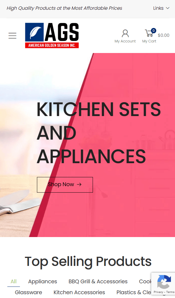 American Golden Season website, an eCommerce platform offering high-quality kitchen products at affordable prices. The site features product categories like appliances, cookware, glassware, BBQ tools, and cleaning items. With cart functionality, catalogs, promotions, newsletters, and customer support sections, the responsive design ensures smooth browsing, secure shopping, and a user-friendly purchasing experience.