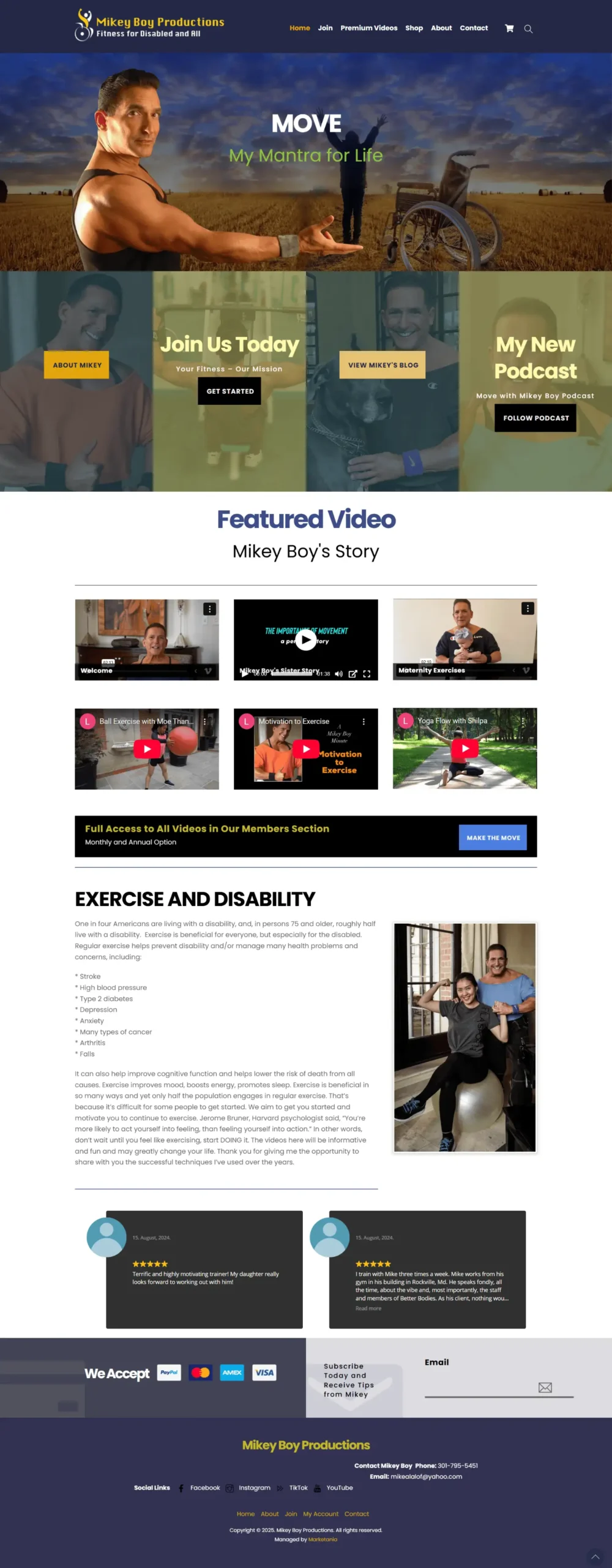 Mikey Boy Productions’ website highlights fitness programs, motivational content, and the “Move with Mikey Boy” podcast. The site features blog posts, premium videos, client testimonials, and social media integration to engage users. Designed for accessibility and inspiration, it encourages visitors to take action, stay motivated, and explore exercise and wellness content effectively.