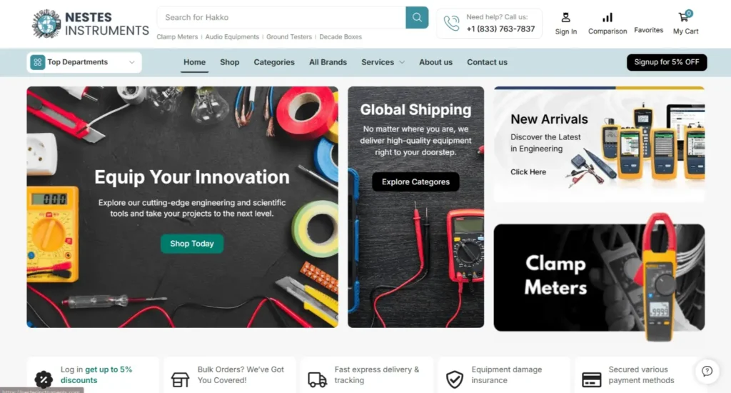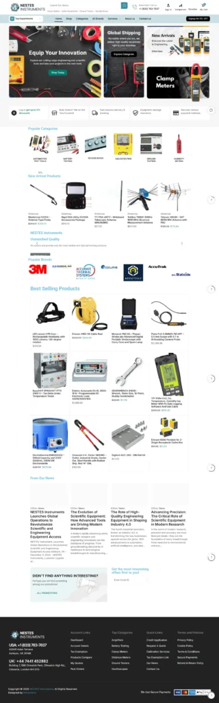 NESTES Instruments’ website is an e-commerce and informational platform for high-precision engineering and scientific tools. The site showcases popular categories, new arrivals, and best-selling products while supporting global shipping, bulk orders, and secure payments. With a modern, responsive design and intuitive navigation, it delivers seamless browsing, product discovery, and updates on industry news and innovations.