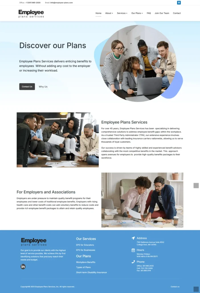 Employee Plans Services’ website clearly communicates their employee benefit solutions and third-party administration expertise. The site features structured service pages, employer-focused messaging, and strong calls to action. Built for clarity, responsiveness, and trust, the website supports lead generation while reinforcing EPS’s credibility and long-standing industry experience.