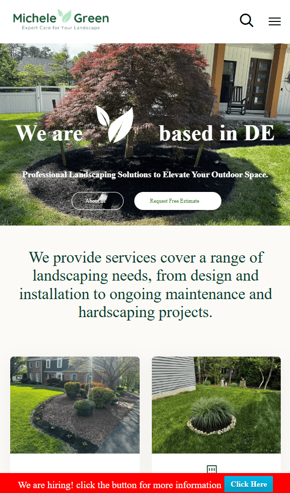 Michele Green Landscaping’s website showcases their full range of landscaping, lawn care, and hardscaping services in Dover, Delaware. The website highlights service offerings, customer testimonials, gallery visuals, and clear contact details. Built for trust and conversions, it reflects the brand’s reliability, craftsmanship, and commitment to beautiful outdoor spaces.