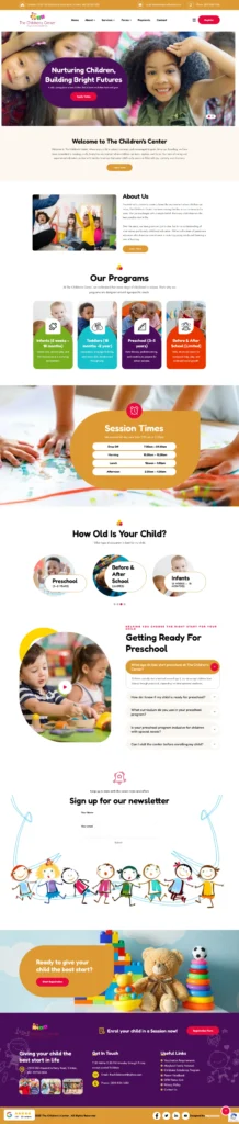 The Children’s Center website provides families with a clear, welcoming portal for early childhood education services in Clinton, MD. The responsive site features program details, session schedules, registration forms, and FAQs. Parents can easily access enrollment information, contact staff, and stay updated through newsletters, ensuring a seamless connection between families and the nurturing learning environment the center provides.